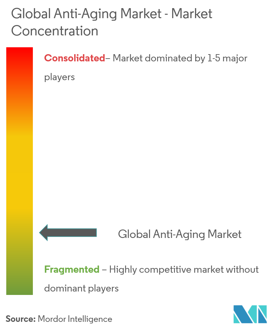 The anti-aging market features moderate concentration: leading multinationals leverage scale, patents, and omnichannel footprints, yet niche challengers gain traction via focused science or demographic niches. L’Oréal, Estée Lauder, and Procter & Gamble co-invest in AI platforms to shorten formulation cycles and hyper-personalise routines. L’Oréal’s partnership with IBM models millions of ingredient permutations to cut prototype timelines by 60%. Acquisitions accelerate capabilities, typified by Bridgepoint’s USD 500 million RoC Skincare purchase that injects mature retinol franchises into a broader European network.