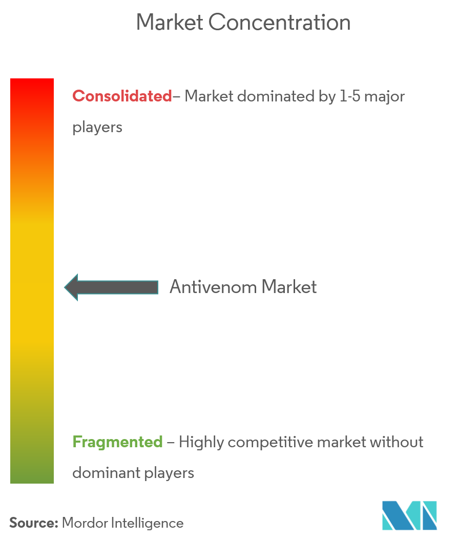 Six major producers dominate the antivenoms market, resulting in moderate concentration driven by specialized equine husbandry, sophisticated downstream purification, and multistage regulatory dossiers. Instituto Butantan, CSL Seqirus, Vins Bioproducts, Bharat Serums & Vaccines, Laboratorios Bioclon, and Rare Disease Therapeutics collectively anchor global capacity. Entry barriers include validated equine herds, GMP fractionation, and WHO pre-qualification audits, all of which require multi-year capital outlays.