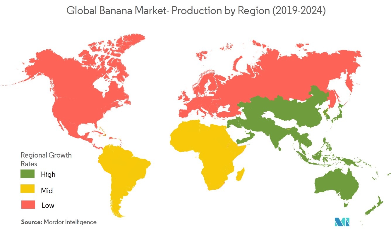 The global banana market is segmented by geography (North America, Europe, Asia-Pacific, South America, and Africa). The study offers the market sizing in terms of volume in metric tons and value in USD thousand.