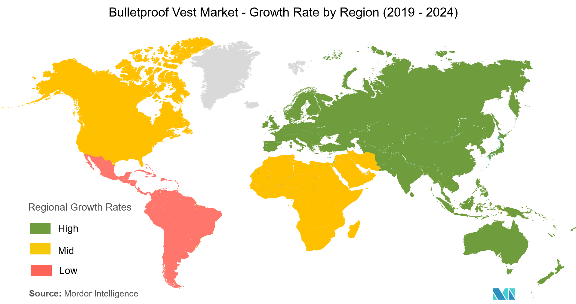 Asia-Pacific charted a 3.90% CAGR to 2030, propelled by 6.2% year-on-year growth in East-Asian defense budgets and indigenous production scale-ups in India, China, and South Korea. MKU’s Kavro Doma 360 helmet order illustrated the region’s preference for localized supply chains that met fast-track delivery targets for frontline units. Chinese UHMWPE exporters drove price competition, enhancing affordability for emerging Southeast-Asian buyers who balanced capability with budget caps.