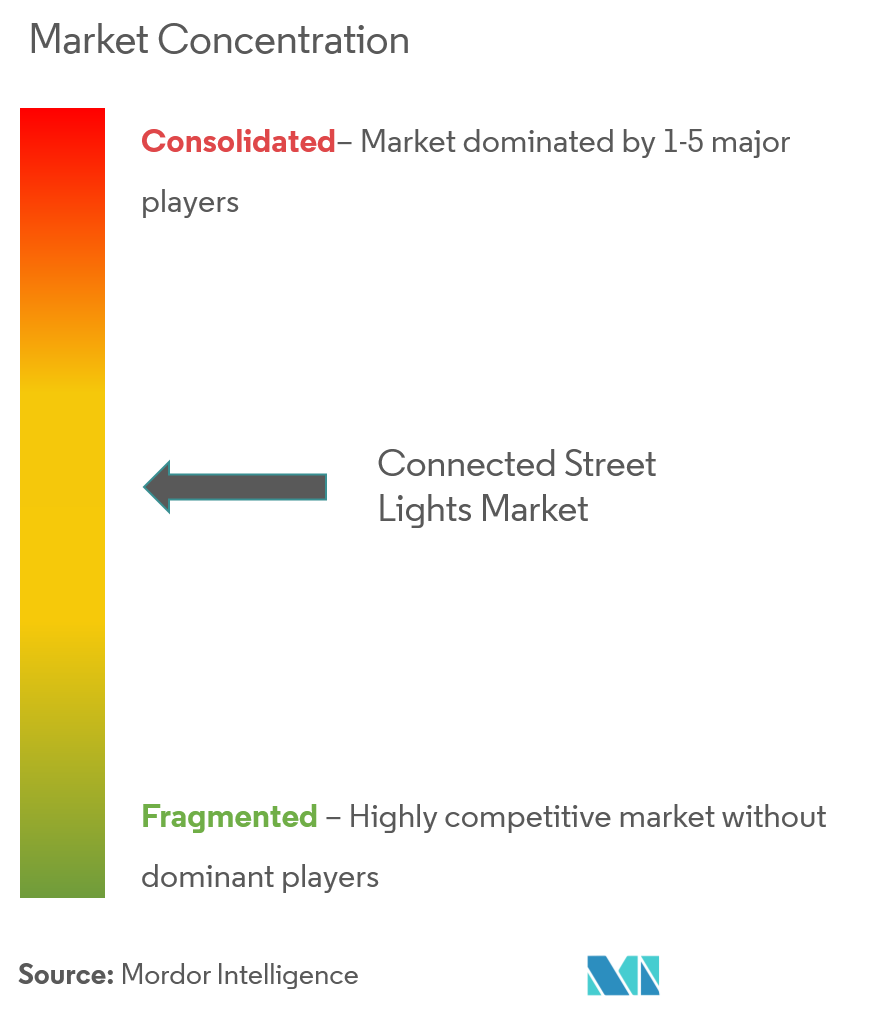 The connected street lighting market is competitive because numerous participants operate nationally and internationally. The big firms mostly use product innovation, mergers, and acquisitions to expand their footprint and stay ahead of the competition.