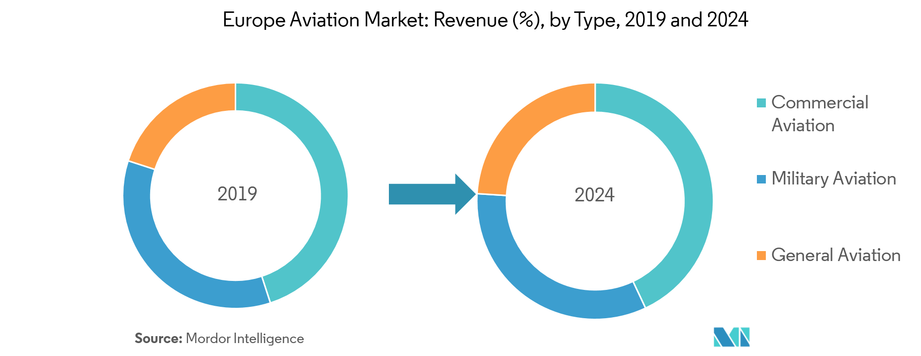 The Europe aviation market is segmented by type and country. By type, the market is segmented into commercial aviation, military aviation, and general aviation. The commercial aviation segment is further divided into passenger aircraft and freighter aircraft. Military aviation is further divided into combat and non-combat aircraft. The general aviation segment is further classified as helicopters, piston fixed-wing aircraft, turboprop aircraft, and business jets. The report also offers the market size and forecasts for major countries across the region. For each segment, the market size is provided in terms of value (USD).
