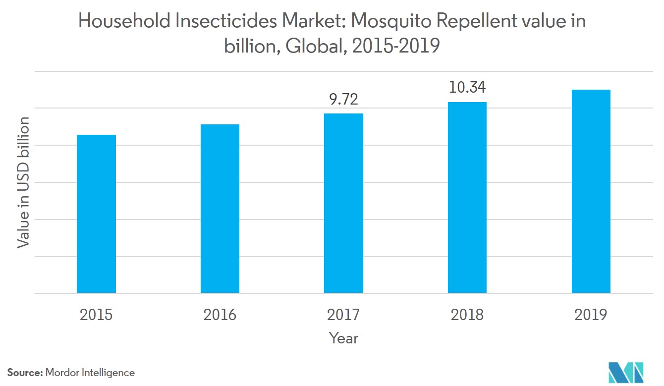 Dengue, malaria, and chikungunya outbreaks are surging far beyond historical baselines, making disease prevention the primary purchase trigger in the household insecticides market. Global dengue incidence jumped 230% from 2023 to 2024, propelling consumers toward continuous protection products that command premium price points. Climate change lengthens mosquito breeding seasons and expands Aedes aegypti into temperate zones, which opens new sales pockets in Europe and North America. Governments subsidize spray and coil purchases for vulnerable communities, especially in South America, where the dengue burden threatens economic productivity[3]Source: Brazilian Ministry of Health, “Dengue Surveillance Report 2024,” Government of Brazil, gov.br. Brands leveraging medical endorsements and scientific messaging enjoy stronger household penetration, as insecticides shift from convenience goods to essential health safeguards. Brazil’s record dengue year drove innovation in long-lasting formulations, reinforcing the link between epidemiological pressure and research and development focus.