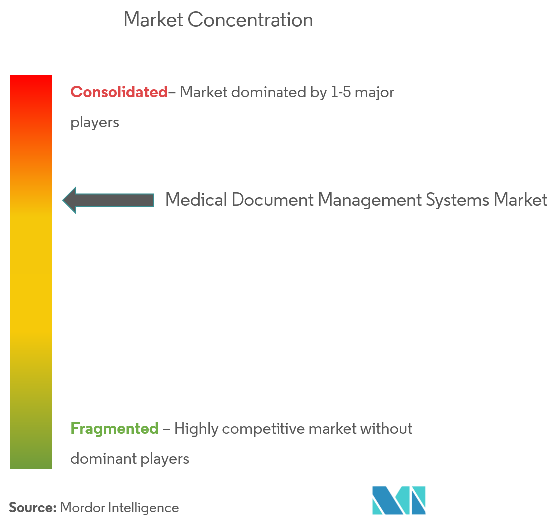 The medical document management systems market is moderately competitive and consists of a few major players. Companies like 3M, Allscripts Healthcare Solutions Inc., Cerner Corporation, Hyland Software Inc., Kofax Ltd, McKesson, Nextgen Healthcare Information Systems LLC, and Siemens AG, among others, hold a substantial share in the market studied.