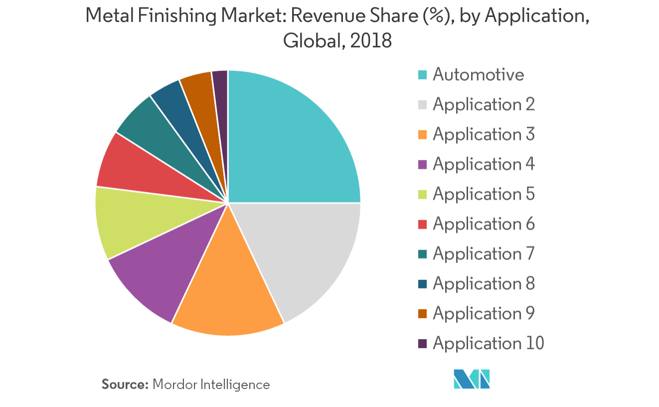 Metal finishing is a term used to describe the process of placing some type of metal coating on the surface of a metallic part, typically referred to as a substrate. It can also involve implementing a process for cleaning, polishing, or otherwise improving a surface. Metal finishing changes the object's surface to improve its appearance and durability. The market is segmented based on type, application, and geography. The market is segmented by type into inorganic metal finishing, organic metal finishing, and hybrid metal finishing. The market is segmented by application into automotive, appliances, hardware, aerospace, heavy equipment, electronics, construction, and other applications. The report offers market size and forecasts for 15 countries across major regions. For each segment, market sizing and forecasts have been done based on revenue (USD) for all the above segments.