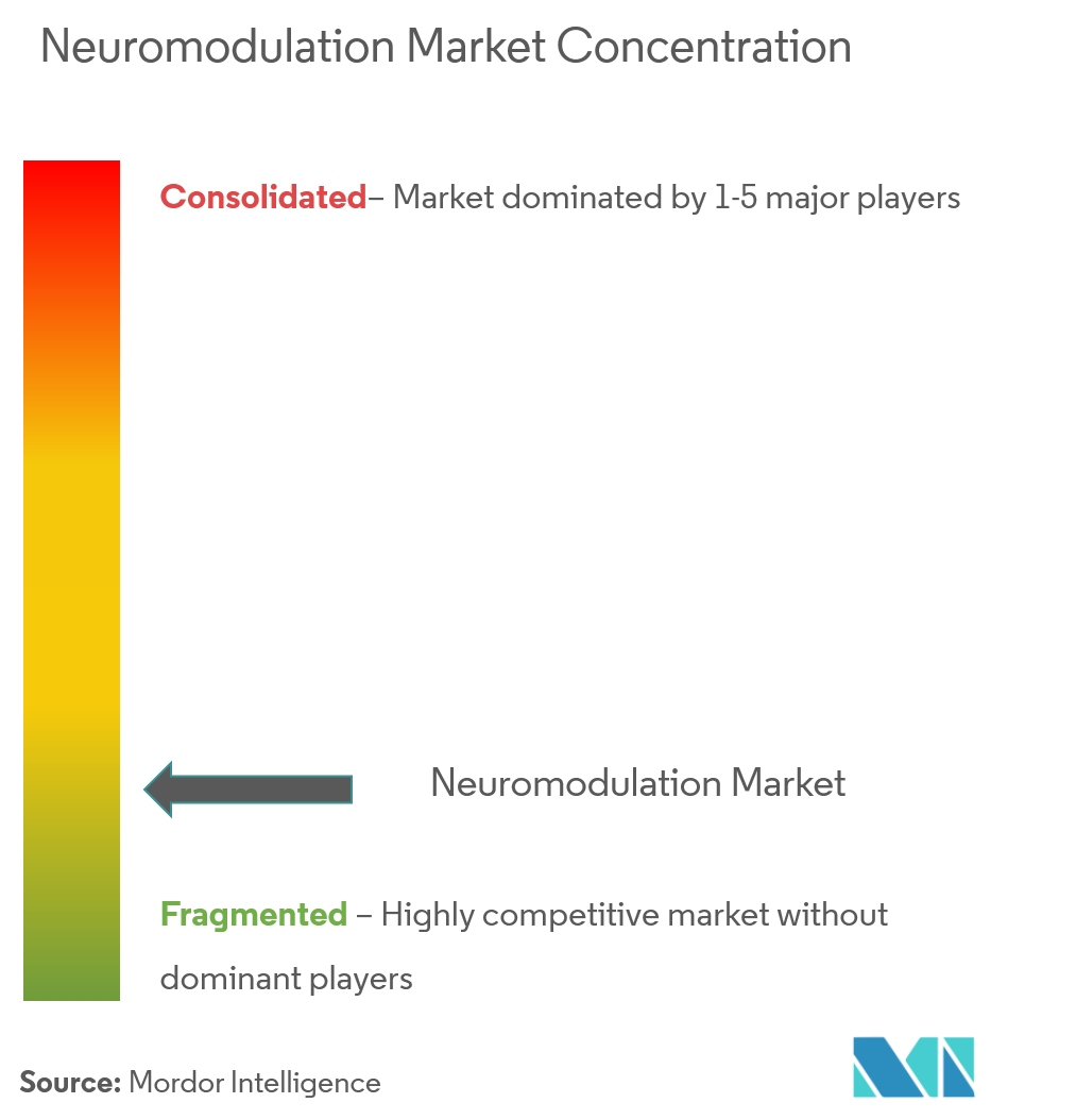 Medtronic, Abbott, and Boston Scientific collectively controlled roughly 65% of global revenue in 2024, marking a moderately concentrated neuromodulation market. Each deploys proprietary waveforms—BurstDR, Spectra, and AdaptiveStim—to tailor neural engagement and fortify defensible niches. Litigation risk remains low because overlapping patents are limited, allowing the trio to focus on clinician education and remote programming portals. Battery and telemetry innovations are now the main differentiators, eclipsing earlier emphasis on lead architecture.