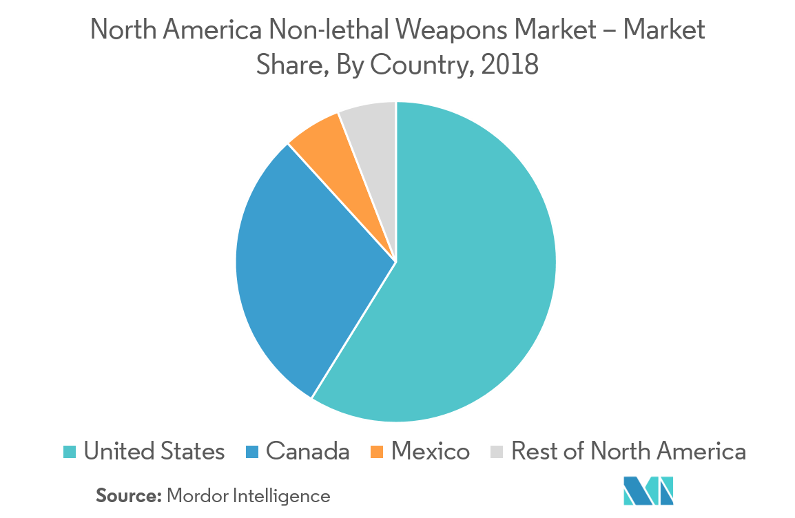 The North American non-lethal weapons market is driven by an increase in violence-related incidents in the US and the subsequent demand for non-lethal weapons by law enforcement agencies to contain the situation effectively. Moreover, growing issues regarding personal safety may lead to the growth of the non-lethal weapons market in the US.