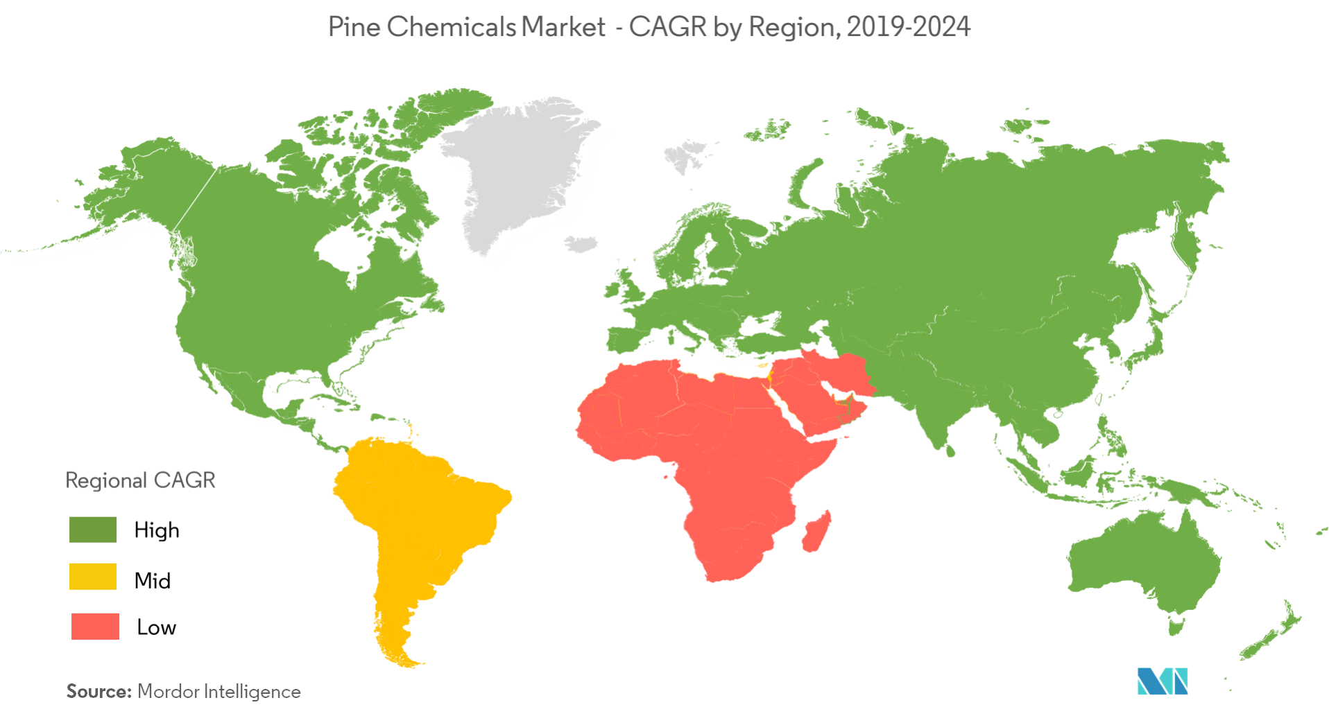 The Asia-Pacific, South America, the Middle East, and Africa collectively supply most gum rosin and absorb growing volumes of rosin ester imports for packaging and construction. China leads gum-resin tapping, but seasonal labor constraints cap output growth, prompting exporters to blend gum and tall-oil rosin to meet color specs. India and Indonesia expand plantations yet face logistics hurdles that limit premium-grade exports. Brazil’s southern states utilize Pinus elliottii for gum rosins, which are used domestically in rubber and cleansing agents, with any surplus directed to Europe. South Africa’s modest tall-oil output serves the domestic adhesives markettheir sourcing, elevating the relevance of North American and European suppliers, while Gulf countries remain net importers. Supply-chain disruptions during pandemic lockdowns prompted many Asian converters to diversify sourcing, elevating North American and European suppliers’ relevance despite longer transit times.