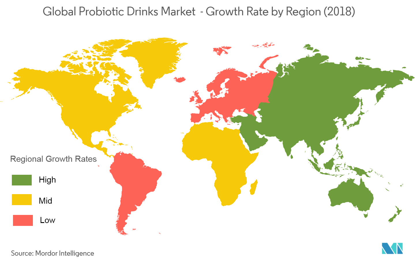 China, Japan, and India are the key markets in the region. According to the International Probiotics Association (IPA), China is one of the most important markets for probiotics in the world. Producers and suppliers have been witnessing a significant increase in sales nationwide. The majority of probiotics are consumed in the form of yogurt and fermented products. Probiotic drinks, such as drinking yogurt, have been experiencing increasing demand from the region.