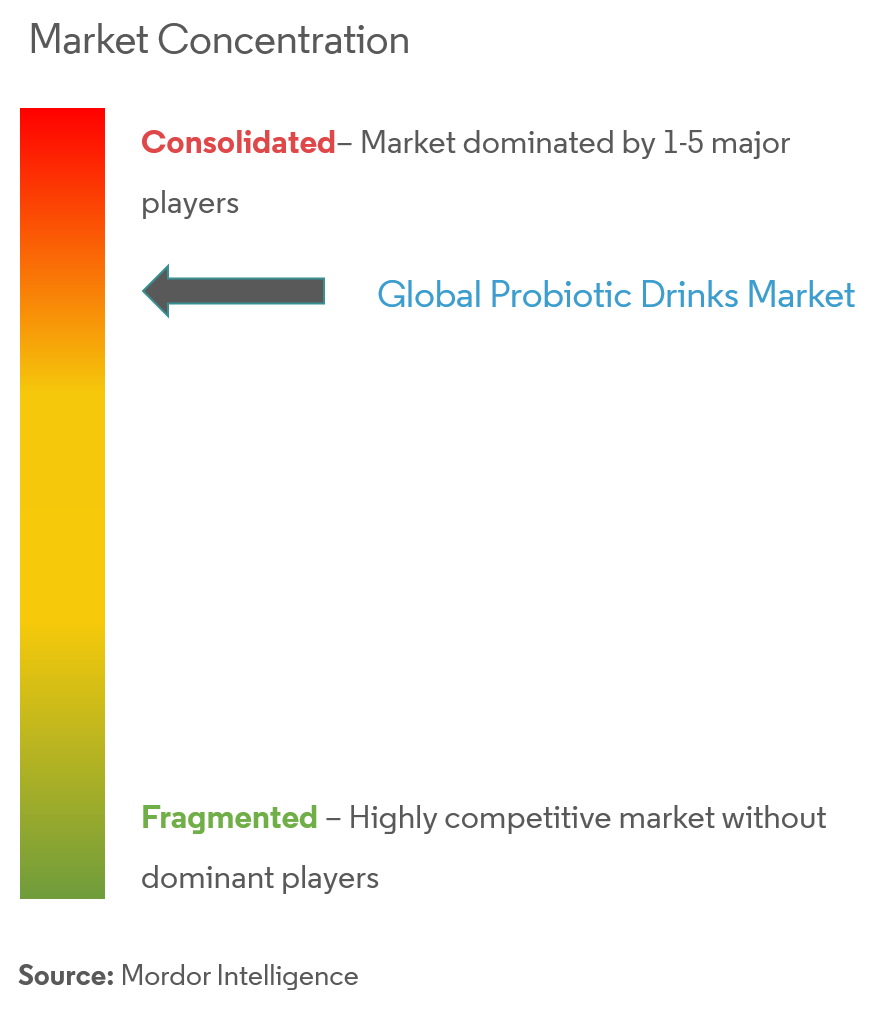 Fonterra Co-op Group Ltd, Yakult Honsha Co. Ltd, Groupe Lactalis, Groupe Danone SA and Kerry Group PLC (Bio-K Plus International Inc.) are the major companies operating in the Probiotic Drinks Market.