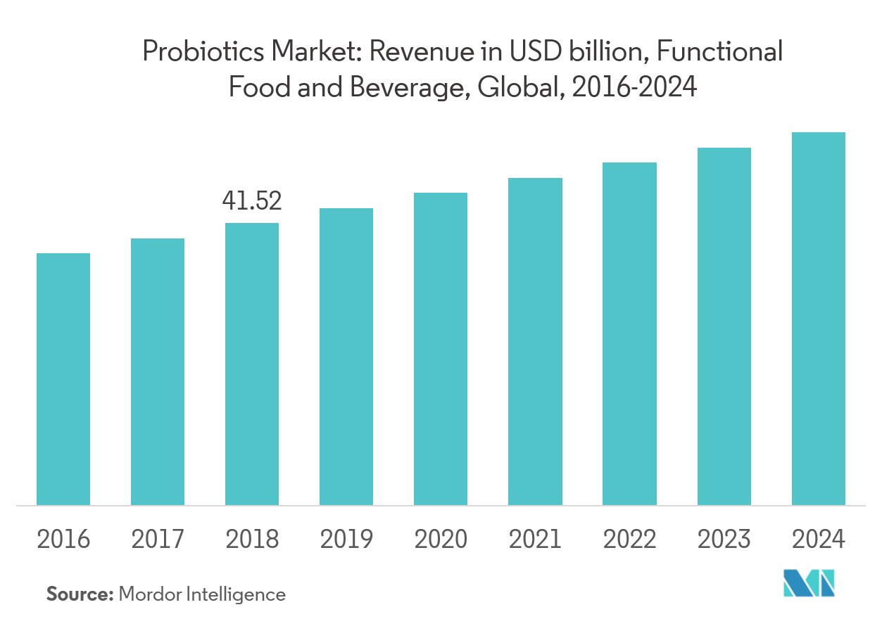 Probiotics are a combination of beneficial bacteria and yeasts that help humans and animals maintain intestinal microbial balance. The probiotics market is segmented by type into probiotic foods, probiotic drinks, dietary supplements, and animal feeds. Probiotic food is further sub-segmented into yogurt, bakery/breakfast cereals, baby food and infant formula, and other probiotic foods. Probiotic drinks have been further classified into fruit-based probiotic drinks and dairy-based probiotic drinks. By distribution channel, the market is segmented into supermarkets/hypermarkets, pharmacies and health stores, convenience stores, online retail stores, and other distribution channels. The study also involves an analysis of the main regions, including North America, Europe, Asia-Pacific, South America, and Middle-East and Africa. For each segment, the market sizing and forecasts have been done on the basis of value (in USD million).