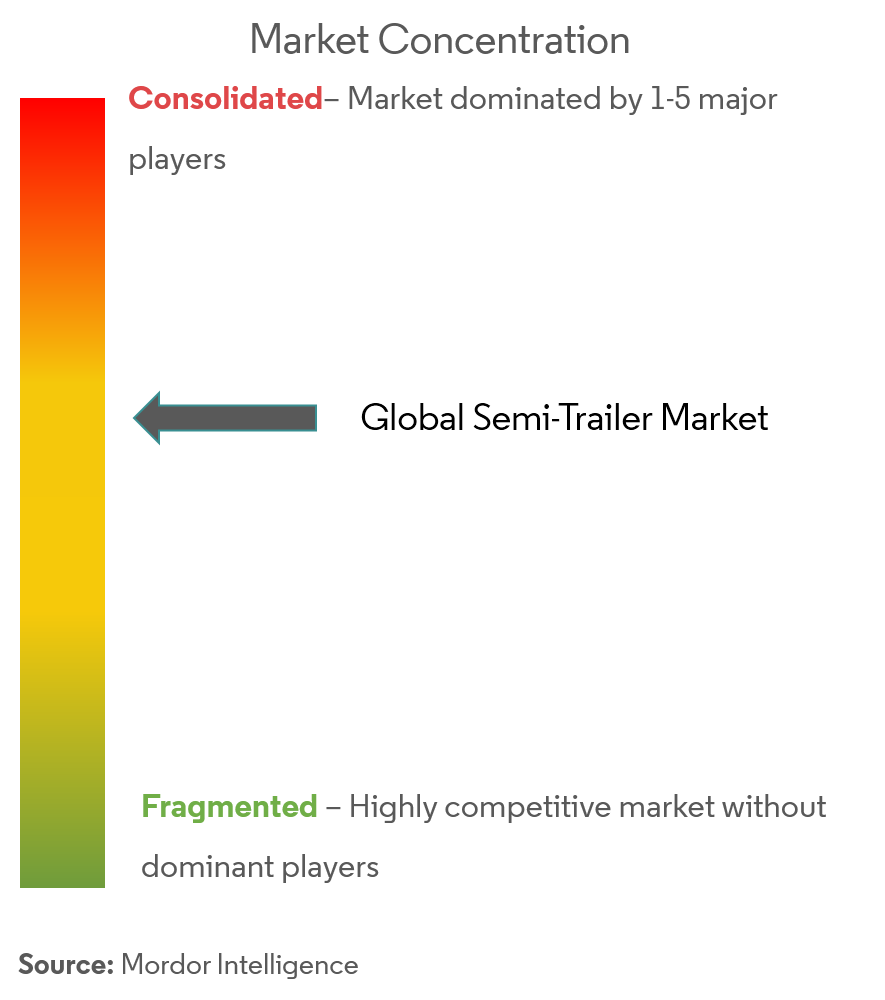 Regional specialists keep relevance by tailoring to local regulations: Schmitz Cargobull sells telematics-equipped reefers pre-certified for EU smart-tachograph mandates, whereas Asian players like Luen Thai focus on super-maneuverable city semi-trailers for tight urban delivery grids. As regulatory requirements and digital integration escalate, manufacturers that merge steel fabrication with software ecosystems are best placed to capture incremental semi-trailer market spend.