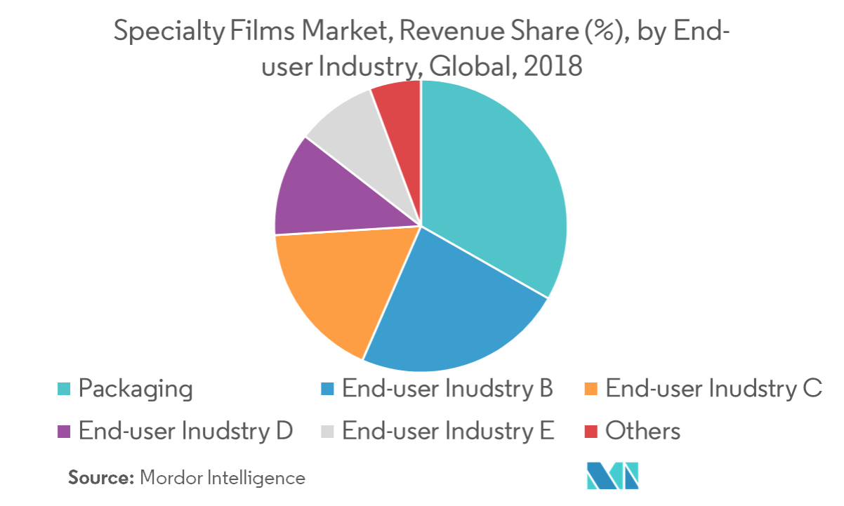 - Packaging segment is the major market for specialty films, owing to their extensive usage in food and pharmaceutical packaging. Specialty films offer various advantages like moisture resistance, toughness, and heat resistance help in the storage of packaged products for a much longer time, as compared to traditional packaging. Food security and increasing pharmaceutical drug usage are driving the growth of specialty film packaging.