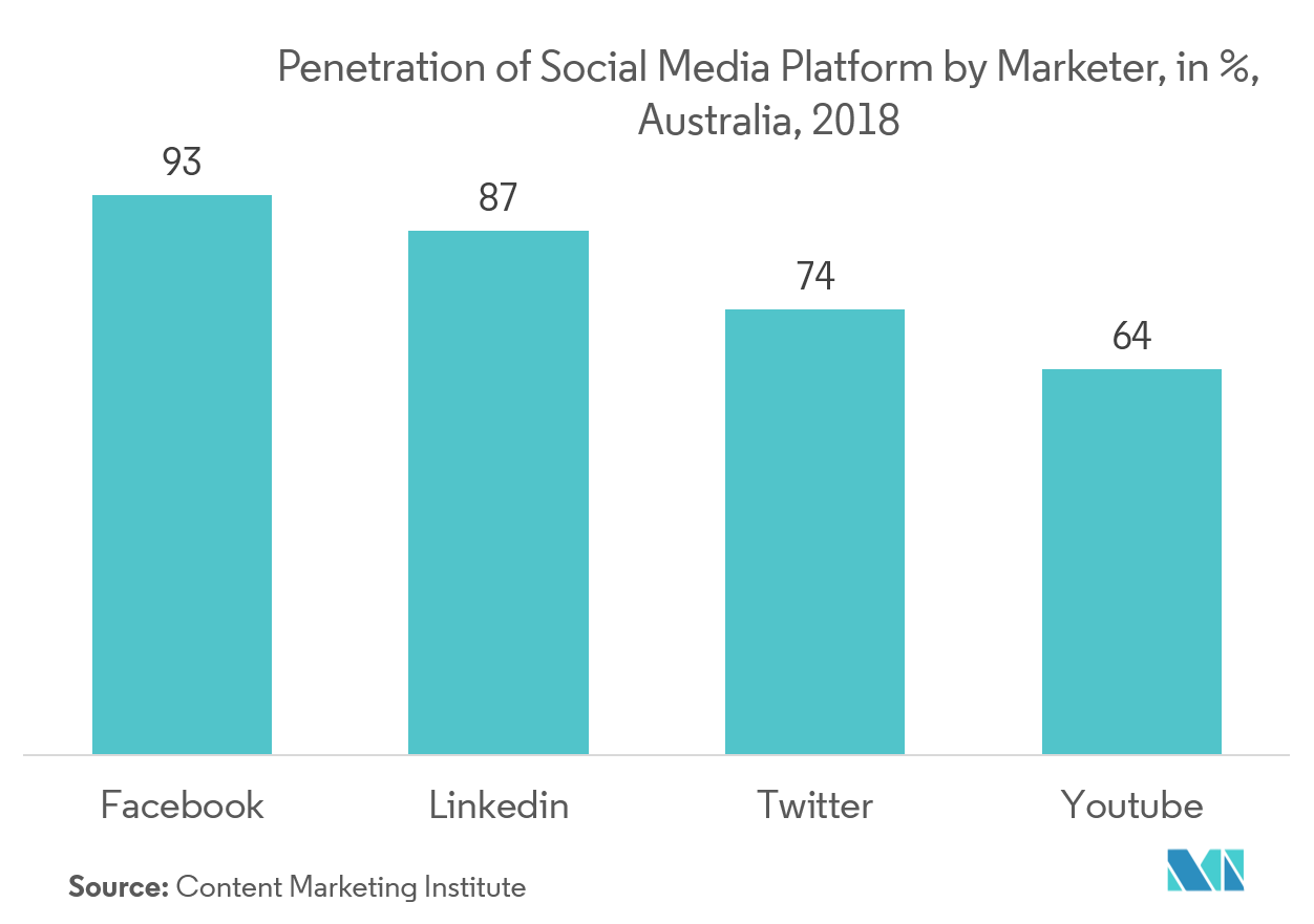 ينمو سوق برامج التسويق الرقمي في أستراليا حيث كانت الشركات الصغيرة أسرع في تناول التسويق الرقمي. من خلال استخدام أدوات متنوعة مثل إدارة علاقات العملاء الاجتماعية، وبرامج البريد الإلكتروني، وبرامج أتمتة السوق، وما إلى ذلك، فإنه يساعد الشركات على تتبع المقاييس السلوكية الفردية عبر الإنترنت، بما في ذلك عمليات الشراء السابقة، ومشاهدات الصفحة، وعمليات البحث، وما إلى ذلك، وينتج معلومات مفيدة لتطبيقها على التسويق الرقمي. الاستراتيجيات.