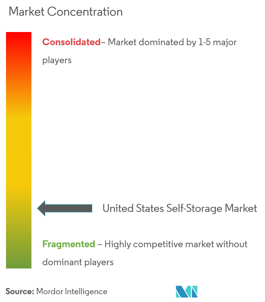 صناديق الاستثمار العقاري العامة تشغل الآن حوالي 40% من القدرة الوطنية، بارتفاع من 20% قبل خمس سنوات، مؤكدة اتجاه التوحيد التدريجي. العلامات التجارية الأربع الأكبر - Public Storage وExtra Space Storage وCubeSmart وNational Storage Affiliates - تتحكم مجتمعة في حوالي 20% من سوق التخزين الذاتي في الولايات المتحدة، تاركة تجزؤاً كبيراً بين المشغلين الصغار. المنصات الكبيرة تستفيد من التسويق المركزي وإدارة الإيرادات بالذكاء الاصطناعي وتكاليف رأس المال الأقل لتجميع المنشآت، خاصة في الأسواق الثانوية حيث يهيمن المستقلون.