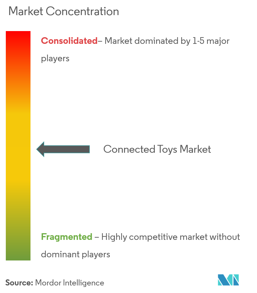 Der Markt für vernetztes Spielzeug ist fragmentiert und zahlreiche Akteure sind auf dem Markt tätig. Auf diesem Markt konkurrieren sowohl etablierte Spielzeughersteller als auch aufstrebende Technologieunternehmen, die verschiedene vernetzte Spielzeuge und intelligente Geräte für Kinder anbieten. Verschiedene Akteure verfolgen Strategien wie Produktinnovationen, Fusionen und Übernahmen, vor allem um ihr Produktportfolio zu erweitern und auf dem Markt wettbewerbsfähig zu bleiben.