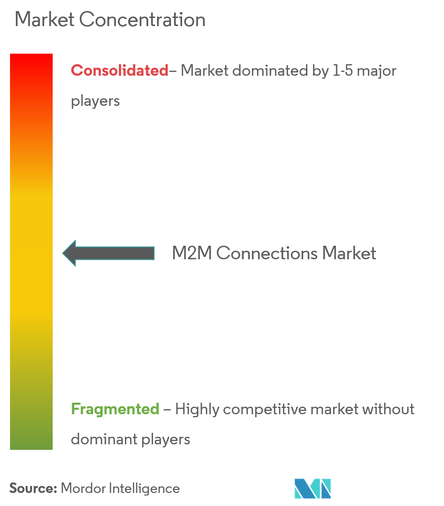 Der Markt für M2M-Verbindungen ist hart umkämpft und zeichnet sich durch eine Vielzahl großer und kleiner Hersteller aus. Diese Unternehmen haben in Forschung und Entwicklung investiert, um ihre Produktionskapazität zu erhöhen und die wachsende Marktnachfrage zu befriedigen. In etablierten Märkten wie Nordamerika und Europa ist der Wettbewerb intensiver. Der Grad der Konkurrenz in diesem Markt wird in den kommenden Jahren aufgrund verschiedener Variablen weiter zunehmen, darunter zunehmende Produktions- und Serviceerweiterungen, eine Zunahme von Akquisitionen und technische Fortschritte.