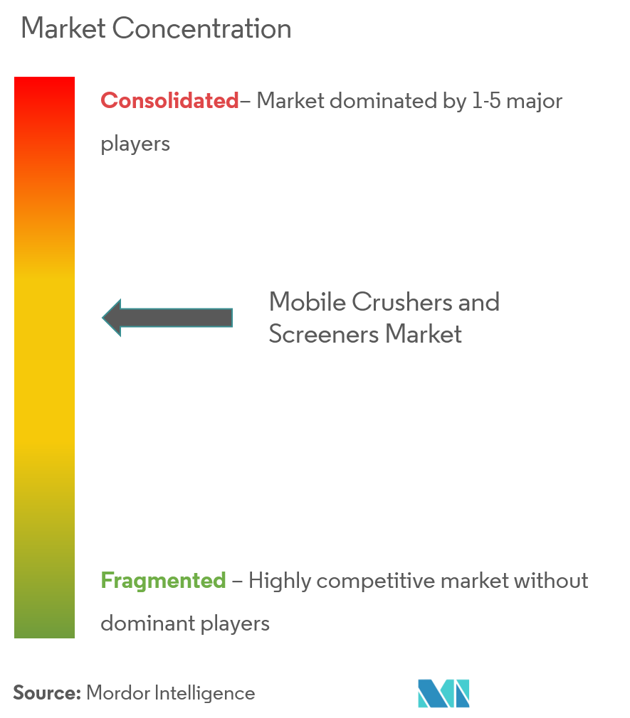 Der Markt für mobile Brecher und Siebanlagen weist eine Fragmentierung auf und beherbergt wichtige Akteure wie Terex Corporation, Metso Corporation, CDE Global, Komatsu Mining Corporation und McCloskey International Ltd. Diese Akteure setzen Strategien wie Partnerschaften und Übernahmen um, um ihre Produktportfolios zu bereichern und eine nachhaltige Zukunft zu sichern Wettbewerbsvorteil.