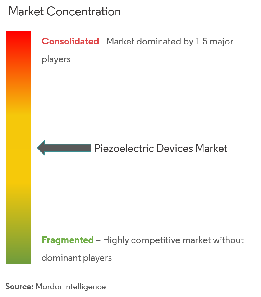 Der Markt für piezoelektrische Geräte bleibt mäßig konzentriert. TDK, Murata, Kyocera und Physik Instrumente setzen auf vertikale Integration und ermöglichen Kontrolle von Rohpulvern bis zu verpackten Modulen. TDK generierte 14,6 Milliarden USD Umsatz im Geschäftsjahr 2024, wobei PowerHap-Aktuator- und Automotive-Sensor-Linien die Gruppendurchschnitte übertrafen und bis 2027 eine 15%ige Rendite auf investiertes Kapital anstreben. Kyocera stellte 469 Millionen USD für ein Nagasaki-Keramikwerk bereit, das bis 2030 jährlich Feinkomponenten im Wert von 25 Milliarden Yen versenden wird, was das Vertrauen des Managements in halbleitergetriebene Nachfrage unterstreicht. Murata meldete einen 6,3%igen Umsatzanstieg auf 1,743 Billionen Yen im Geschäftsjahr 2025, angetrieben von Multilayer-Kondensatoren für Mobilitätsplattformen.