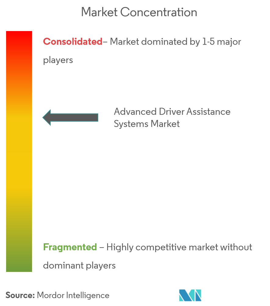El mercado de ADAS exhibe concentración moderada. Continental aprovecha controladores multidominio y adquisición de silicio intersectorial, mientras que Bosch mantiene su posición a través de relaciones de tren motriz de larga data y escala en producción de radar.