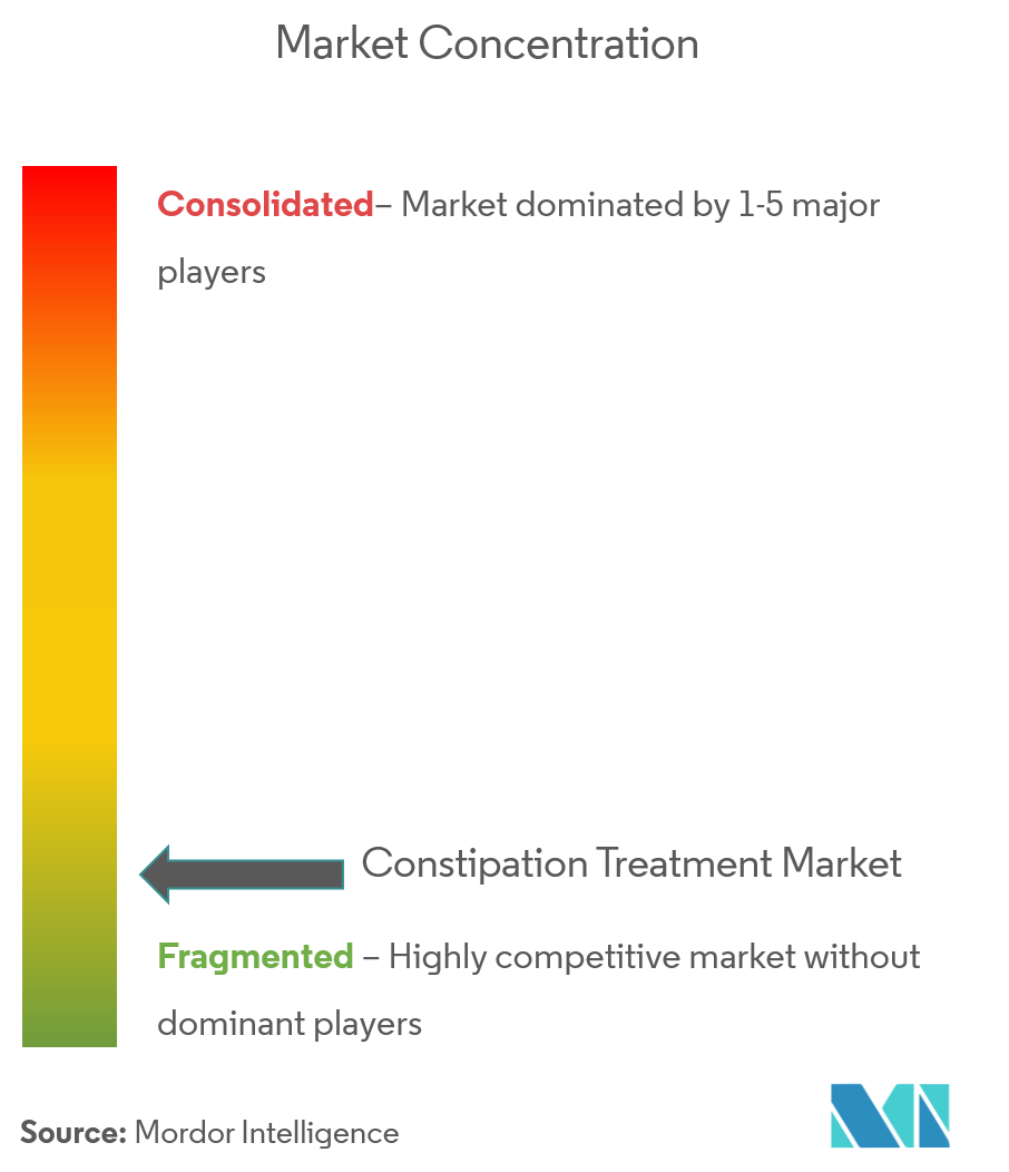 La concentración del mercado es moderada. Linzess de Ironwood y Motegrity de Takeda permanecen como anclas de categoría, sin embargo combinados representaron menos de un tercio de los ingresos de 2024, dejando espacio para retadores. El prucaloprida genérico de ANI talló participación rápida bajo incentivos de Terapia Genérica Competitiva de la FDA. Bayer usa herencia OTC para tender puentes de consumidores hacia regímenes de prescripción, mientras que AbbVie crece su nicho en CEI con metilnaltrexona.