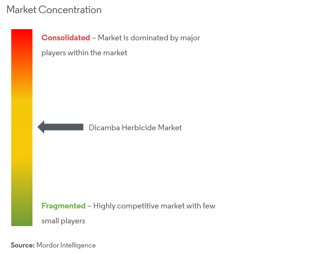 Bayer AG (The Monsanto Company), Basf SE, Corteva Agriscience, Nufarm Ltd, Marubeni Corporation son las principales empresas que operan en el mercado de herbicidas Dicamba.