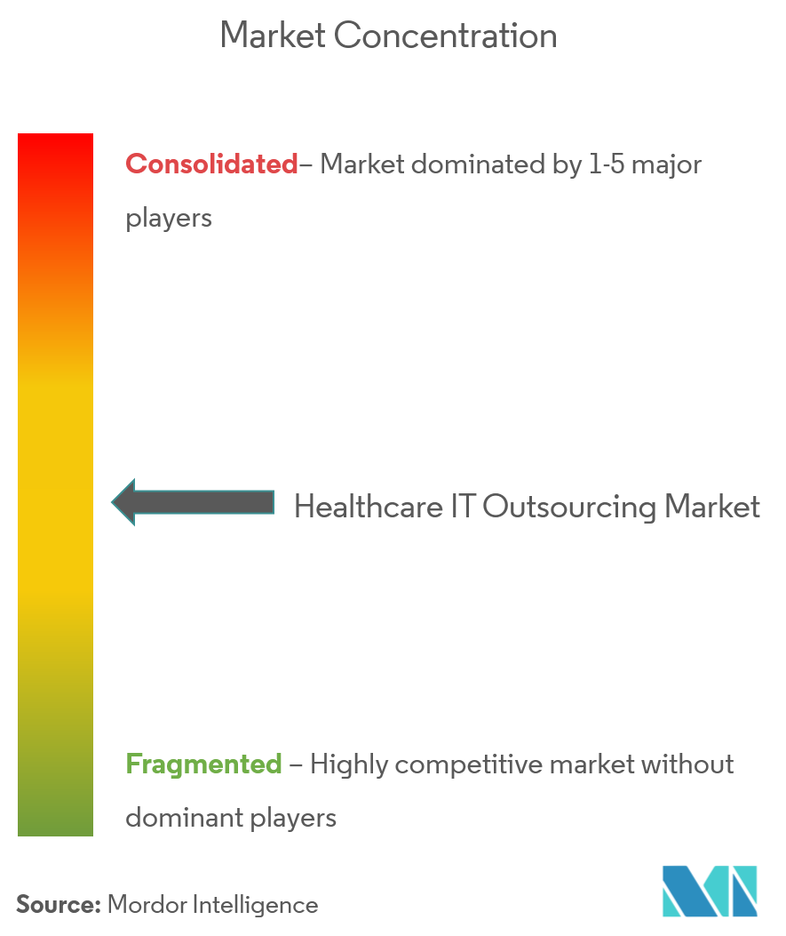El mercado de subcontratación de TI para el cuidado de la salud es altamente competitivo y está formado por varios actores importantes. Con los avances tecnológicos y las innovaciones de productos, las empresas medianas y pequeñas están aumentando su presencia en el mercado mediante la introducción de nuevos productos y servicios a precios bajos. Algunas de las principales empresas que operan en el mercado son IBM, Oracle, Cerner, Mckesson, Philips Healthcare, Siemens Healthcare, Accenture, Tata Consultancy Services, Dell e Infosys.