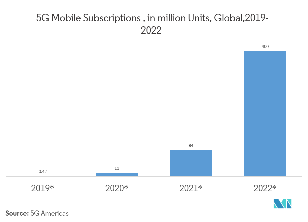 - Durante el período previsto, se prevé que la creciente necesidad de conectividad de área amplia de baja potencia en las aplicaciones de Internet de las cosas (IoT) impulsará el crecimiento de todo el mercado.
