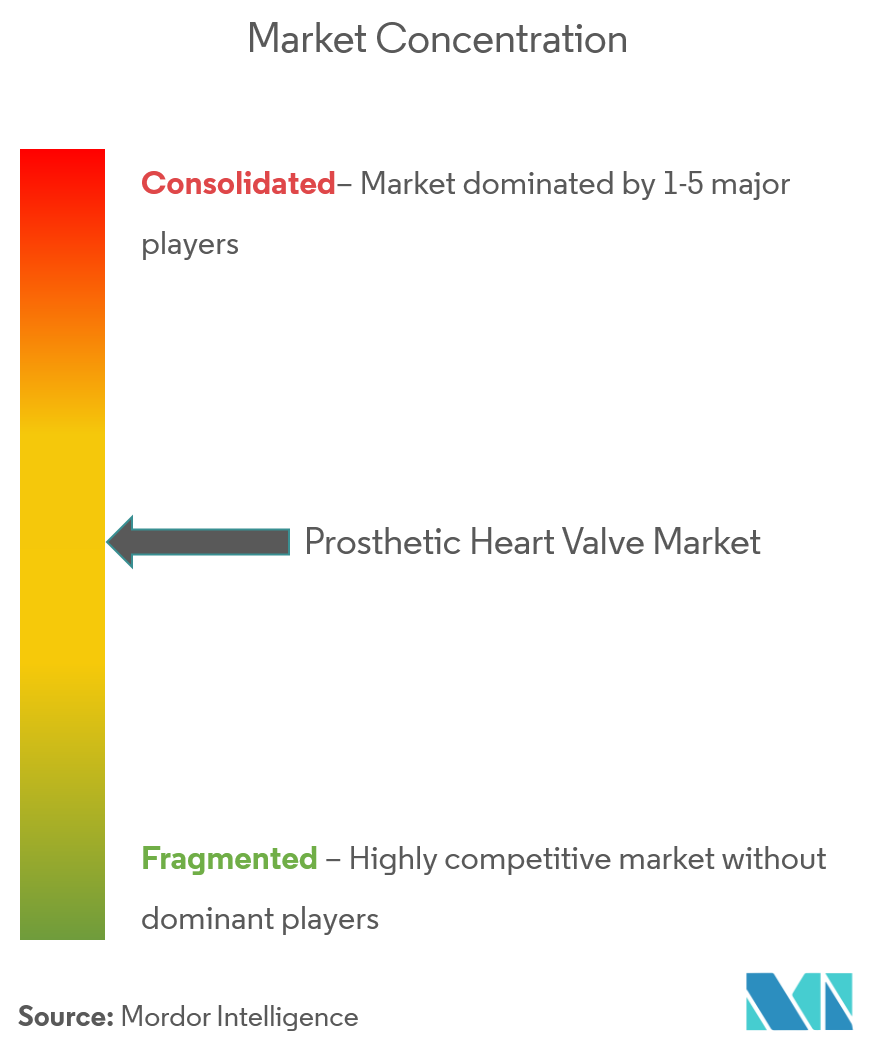 La concentración moderada define el mercado de válvulas cardíacas protésicas, con multinacionales establecidas expandiendo carteras mientras los entrantes ágiles se dirigen a posiciones de espacio blanco. Edwards Lifesciences lidera a través de terapias TAVR, mitral transcatéter y tricúspides integrales, reforzado por movimientos verticales incluyendo la compra de Innovalve por 300 millones USD. Medtronic mantiene amplitud competitiva, mientras que Abbott aprovecha la amplitud del corazón estructural ejemplificada por la autorización FDA de Tendyne en 2025. Los estudios ACURATE neo2 de Boston Scientific añaden opciones valvulares incrementales.