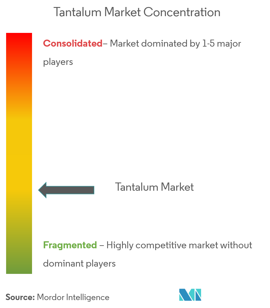 El mercado del tantalio está parcialmente consolidado en cuanto a empresas mineras de tantalio. Las principales empresas (no en un orden particular) incluyen Global Advanced Metals Pty Ltd, AMG Advanced Metallurgical Group NV, Pilbara Minerals, Alliance Mineral Assets Limited y Minsur (Mining Taboca).
