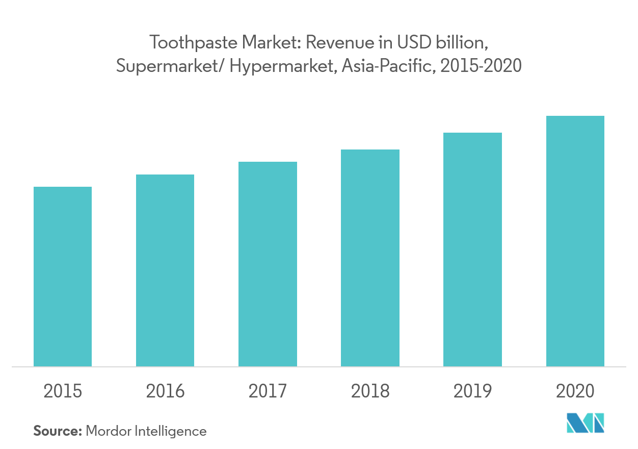 La Chine a connu une énorme croissance démographique et une augmentation des dépenses en produits de soins personnels et dhygiène, ce qui a alimenté lexpansion des grandes entreprises de dentifrice dans ces pays. Les préférences des consommateurs pour les dentifrices biologiques et à base de plantes ont lancé des produits ciblés sur les tablettes des magasins. Selon l'enquête épidémiologique nationale sur la santé bucco-dentaire en Chine, les problèmes de soins bucco-dentaires sont croissants en Chine, ce qui pourrait être l'une des causes de l'augmentation de la demande de dentifrice. De plus, les gens modifient leurs préférences en matière de dentifrice, séloignant des dentifrices bon marché pour se tourner vers des dentifrices de meilleure qualité et présentant de meilleurs avantages.
