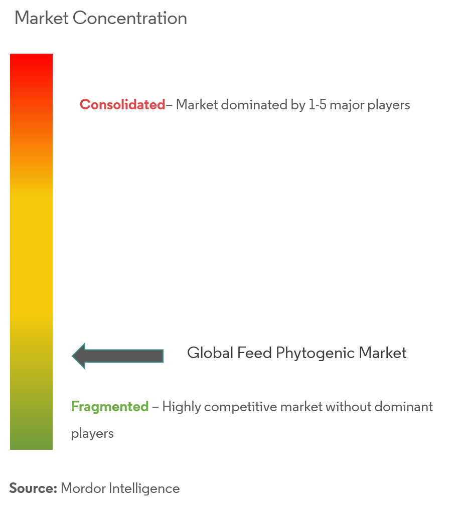 Le marché de la phytogénie alimentaire est modérément consolidé, les cinq premières entreprises occupant 59,28 %. Les principaux acteurs de ce marché sont Adisseo, Cargill Inc., DSM Nutritional Products AG, IFF (Danisco Animal Nutrition) et Land O'Lakes (triés par ordre alphabétique).