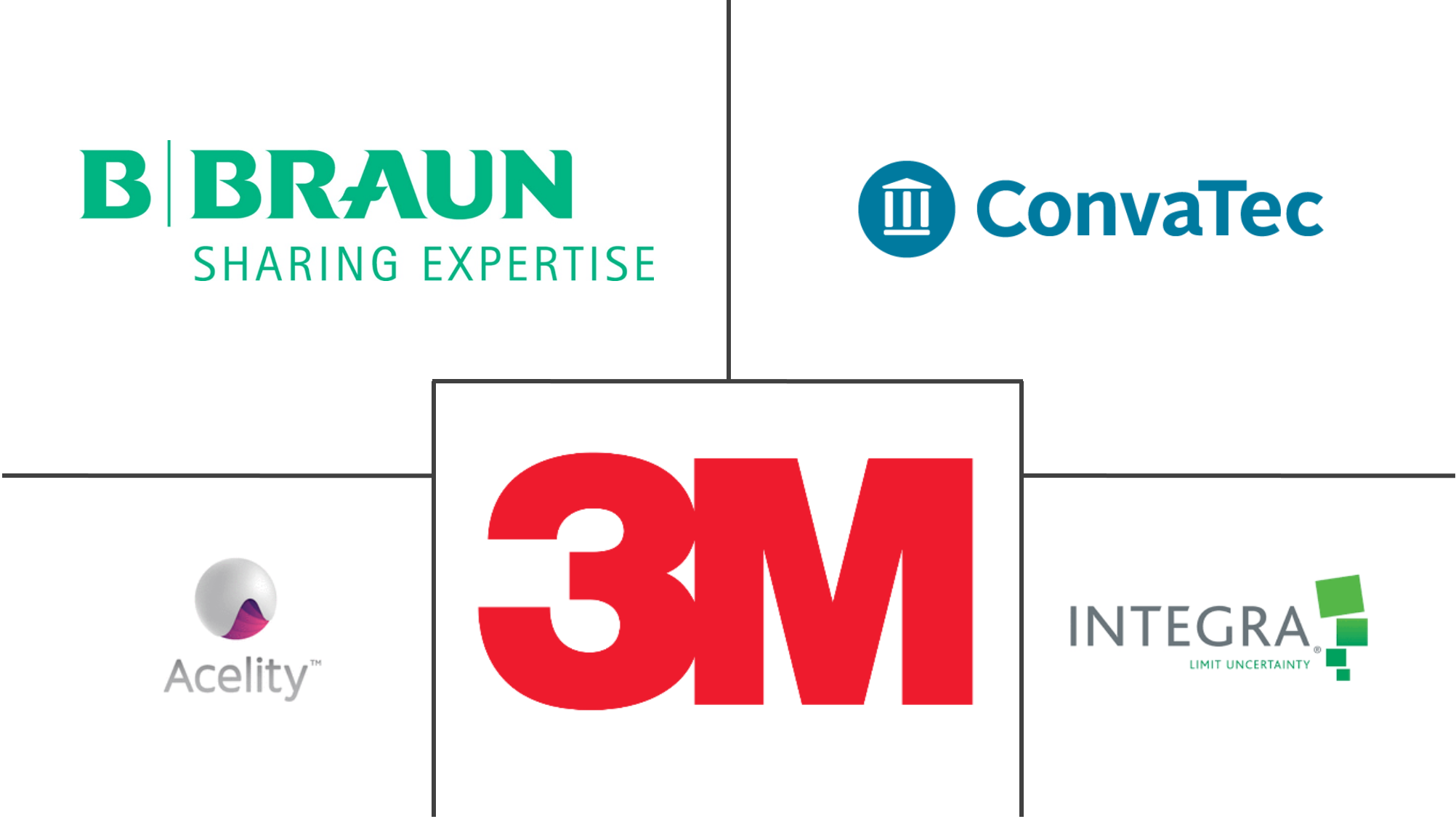 ConvaTec Inc., B.Braun Melsungen AG, 3M Company, Coloplast AS, Integra Lifesciences Corporation sont les principales sociétés opérant sur le marché mondial des pansements à largent.