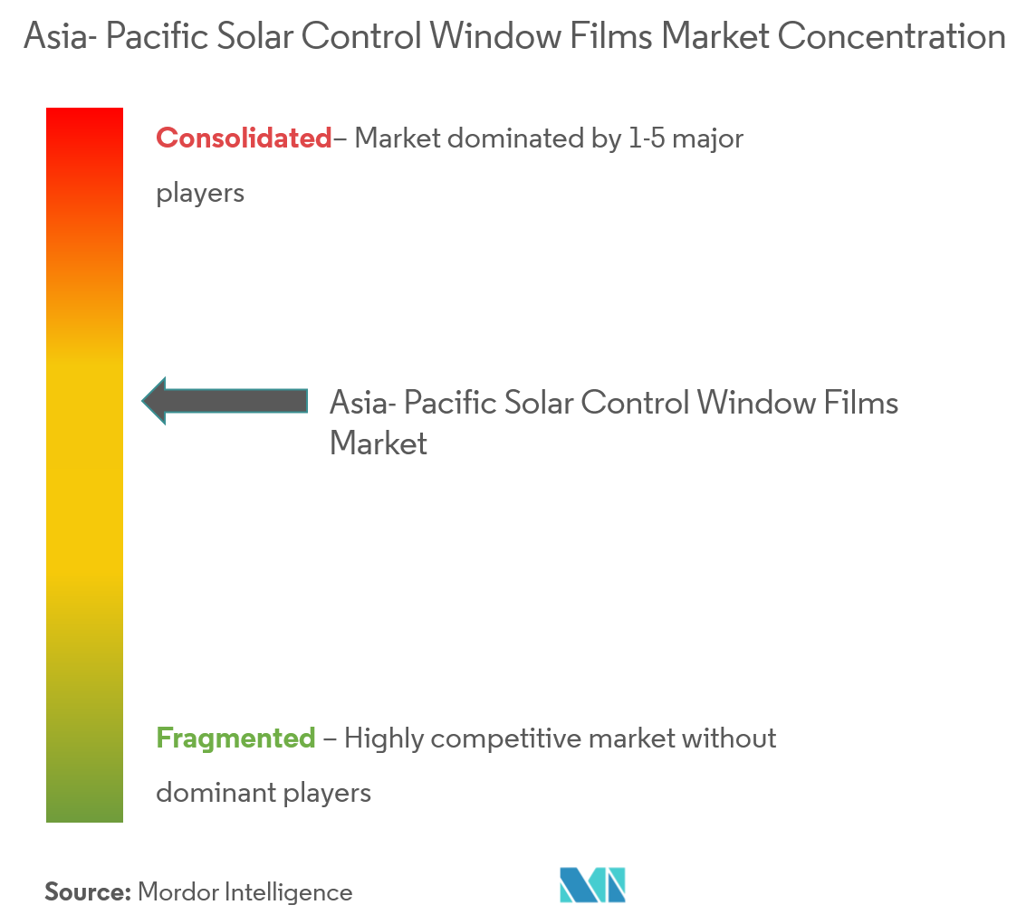 The Asia-Pacific solar control window films market is semi-consolidated. The major companies include 3M, Saint-Gobain Performance Plastics Corporation, Eastman Chemical Company, Polytronix Inc, and Purlfrost, among others.