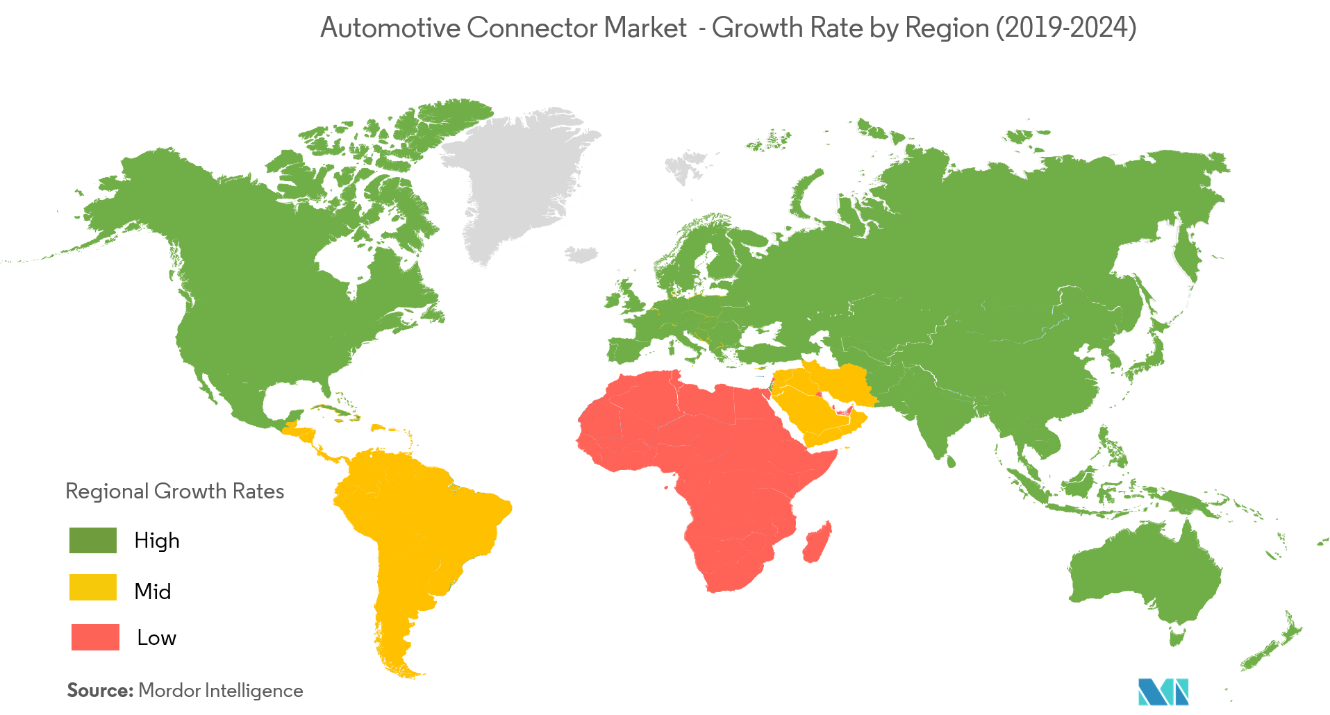 - Asia-Pacific captured 38.60% of the automotive connector market in 2024; the Middle East and Africa region is forecast to record a 15.2% CAGR to 2030.