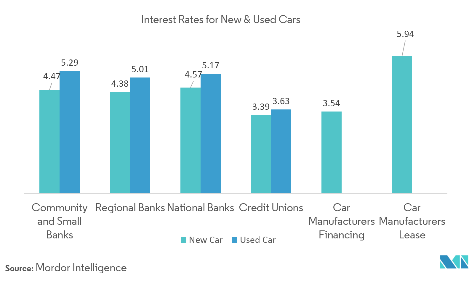 Used-car financing, which already commands 53.40% of the automotive financing market, is growing at a rapid 9.2% pace and is set to remain the key growth engine through 2030. Digital origination platforms, heightened consumer appetite for flexible payment structures, and the continued electrification of vehicle fleets are together sustaining momentum even while benchmark rates remain elevated.[1]Lenders are responding by deepening analytics capabilities, widening risk-based pricing, and partnering with online auto-retail marketplaces to keep credit flowing. The ability to combine financing with value-added mobility services, such as subscription packages and battery leasing, is also becoming a decisive competitive lever for banks, OEM captives, and fintech entrants alike.