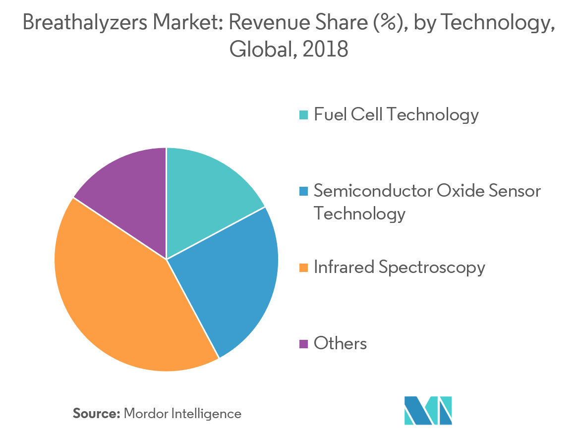 - By technology, fuel cell sensors held a 63.12% share of the breathalyzer market in 2024, while infrared spectroscopy is projected to grow at a 19.41% CAGR to 2030.
