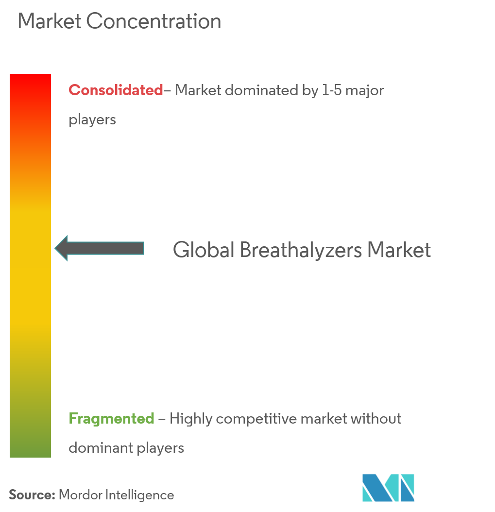 The breathalyzers market is moderately concentrated, yet competitive intensity is climbing as medical-device specialists enter with diagnostic solutions. Drägerwerk AG & Co. KGaA leverages a century-plus heritage in safety engineering, positioning its products as the evidential gold standard. Recent financial disclosures show growing earnings resilience, implying operational efficiencies that could support forthcoming R&D into multi-analyte breath screening. An immediate implication is that smaller rivals may need alliances to match Dräger’s global calibration infrastructure or risk declining visibility in high-value tender lists.