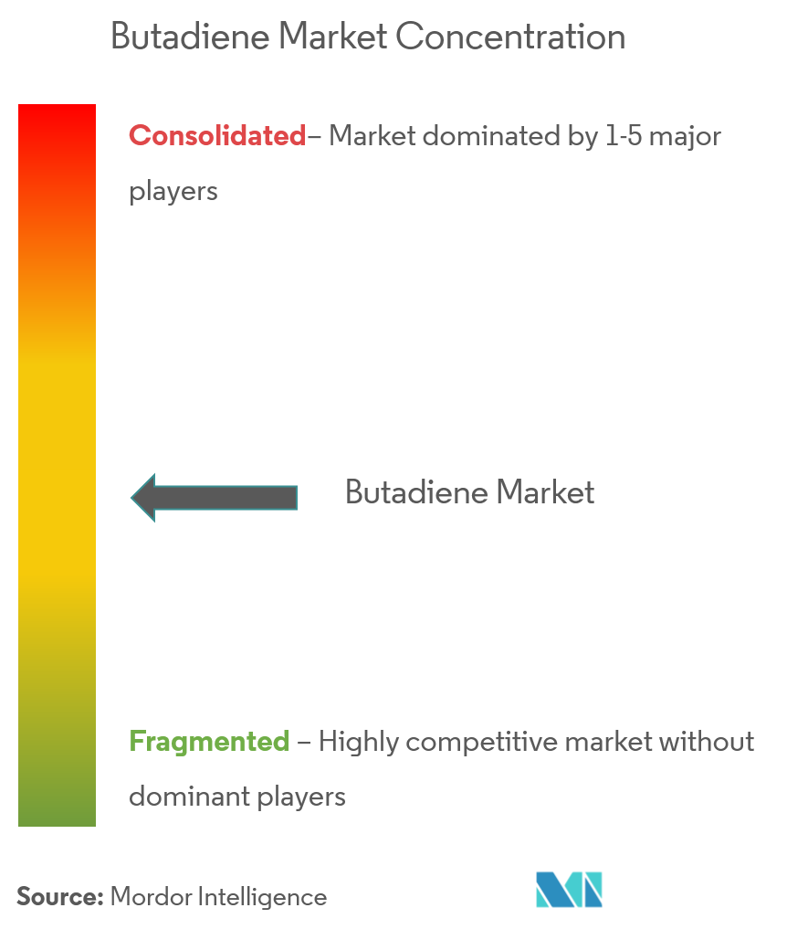 The Butadiene market is moderately fragmented. Sinopec leads global synthetic-rubber capacity at 1,915 kilotons, followed by ARLANXEO at 1,889 kilotons, PetroChina at 1,380 kilotons, and Sibur at 1,278 kilotons, according to IISRP’s 2024 rankings. Consolidation continues: Eneos acquired JSR’s elastomers arm in 2022, Synthos bought Trinseo’s rubber assets in 2021, and INEOS secured Shell’s Geismar facility in 2023, leaving mid-tier competitors challenged by feedstock volatility and stricter environmental rules.