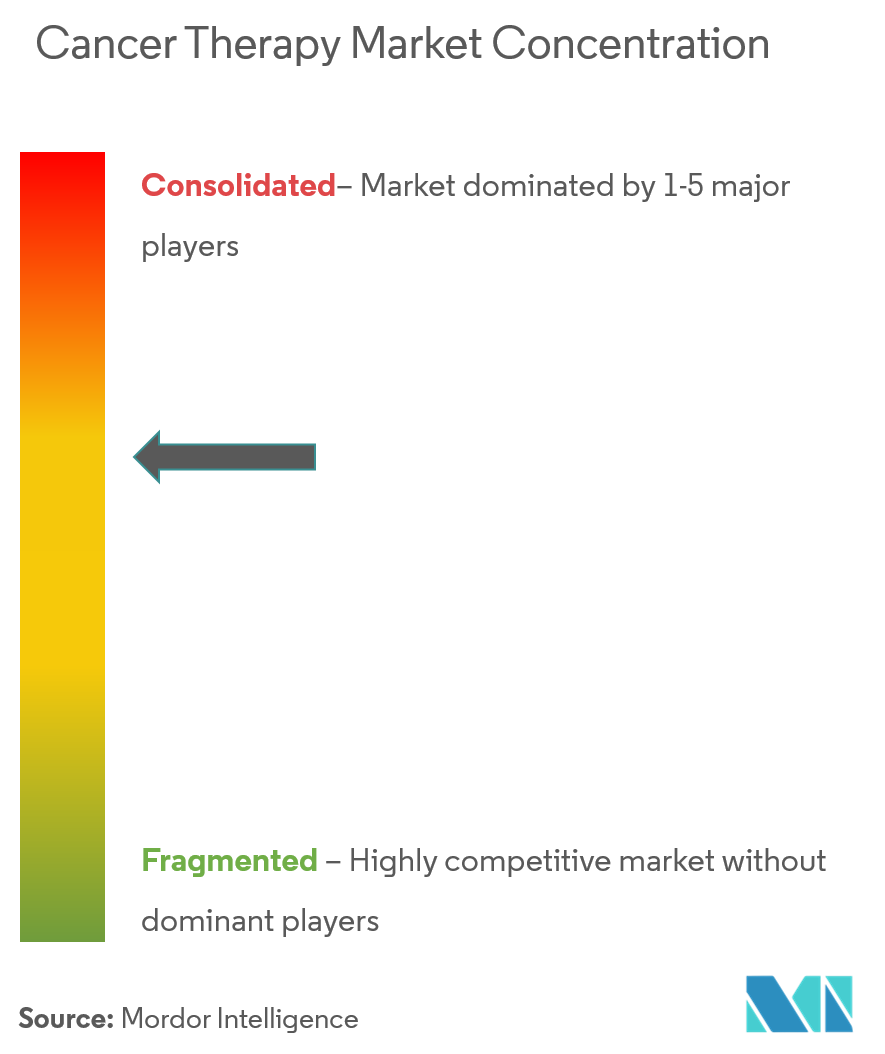The cancer therapy market exhibits moderate concentration, with the top pharmaceutical companies controlling roughly 38% of the revenue in 2025. However, biosimilar entrants and focused biotechs continue to fragment the market share. Patent cliffs on blockbuster antibodies compel incumbents to acquire or license late-stage assets, with deal values surpassing USD 10 billion in select cases. Bispecific antibodies, antibody-drug conjugates, and allogeneic cell platforms dominate pipeline investment. Technology partnerships marry multi-omic datasets with machine learning to accelerate biomarker-driven trial recruitment.