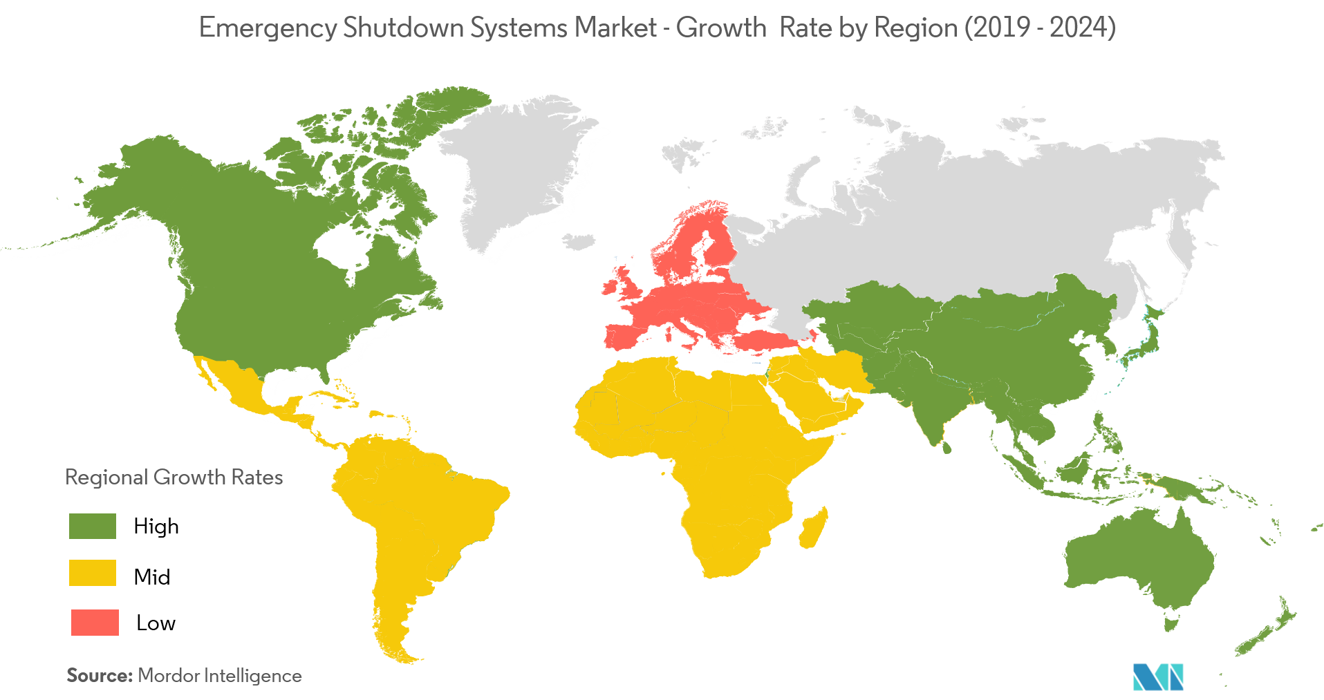 - The increased adoption of industrial control systems with advanced technologies across multiple end-user industries is also anticipated to encourage the adoption of the emergency shutdown systems among considerably large, small and medium enterprise across the region. Thus, the region is expected to provide business opportunities for the market players during the forecast period.