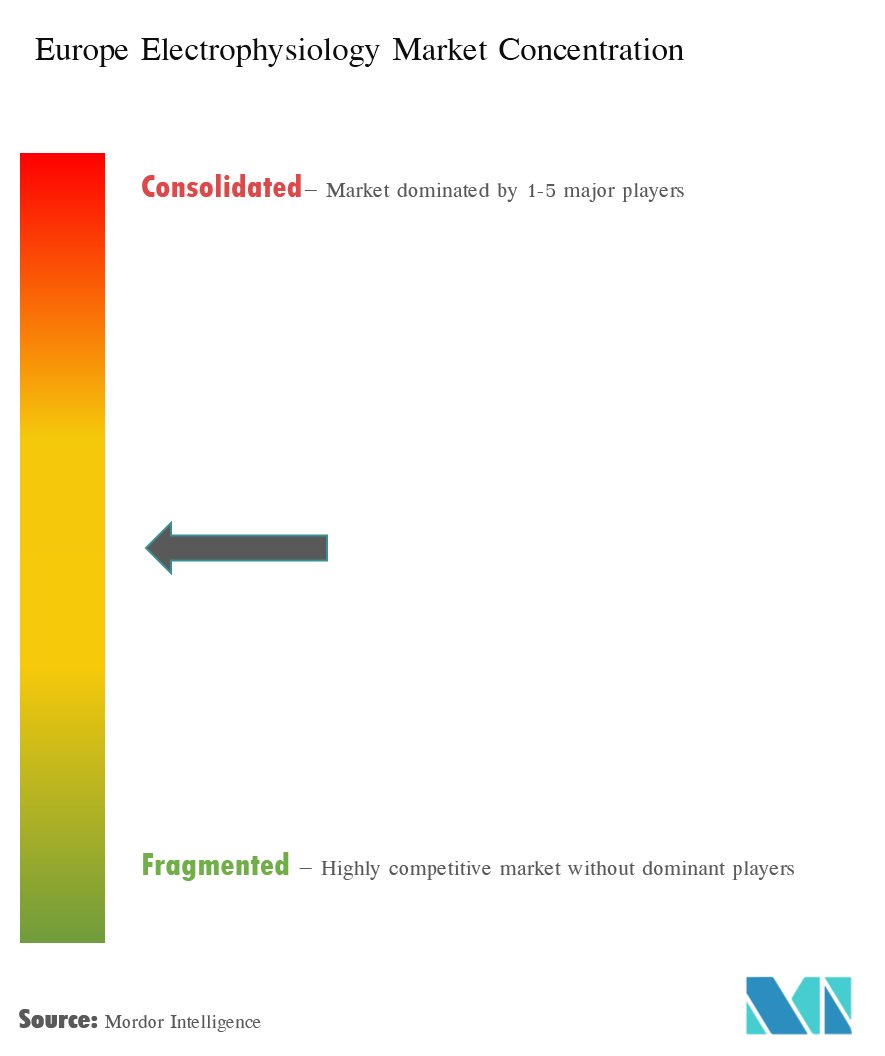 The Europe electrophysiology market is moderately competitive. In terms of market share, few of the major players currently dominate the market. Companies, such as Abbott Laboratories, Boston Scientific Corporation, Biotronik, SE and Co. KG, GE Company (GE Healthcare), Microport Scientific Corporation, and Medtronic plc, among others, hold a substantial market share in the European electrophysiology market. The major players are involved in various developments and strategies such as acquisitions, partnerships, and new product launches to hold the position in the European market. For instance, in November 2020, Abbott Laboratories received CE Mark for its new EnSite X EP System, thus enabling its launch throughout Europe.