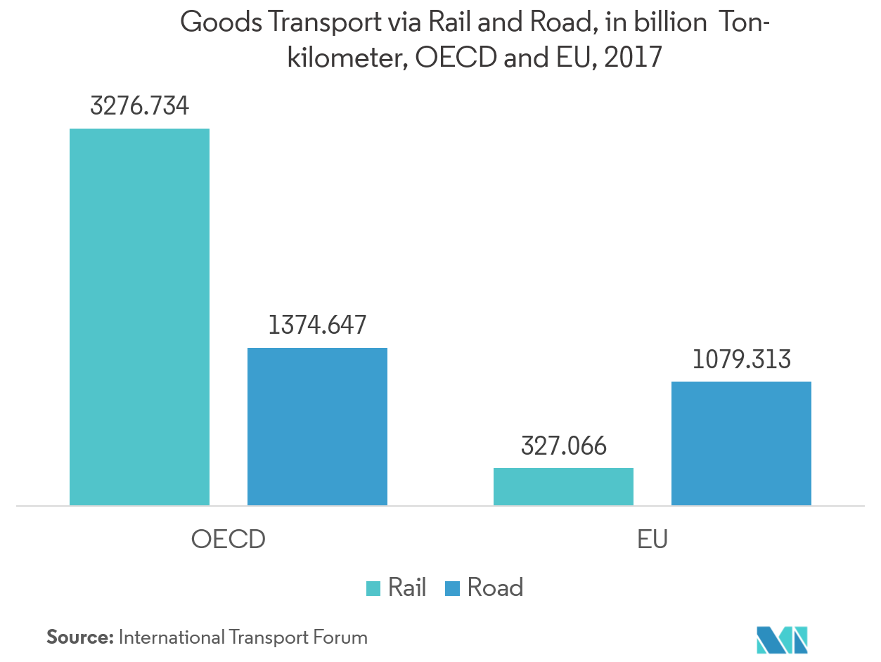 - Furthermore, the main growth driver for this market will be a higher demand for rail freight services, particularly in Organization for Economic Co-operation and Development (OECD) countries. With that in mind, rail freight management solutions are expected to grow significantly over the forecast period.