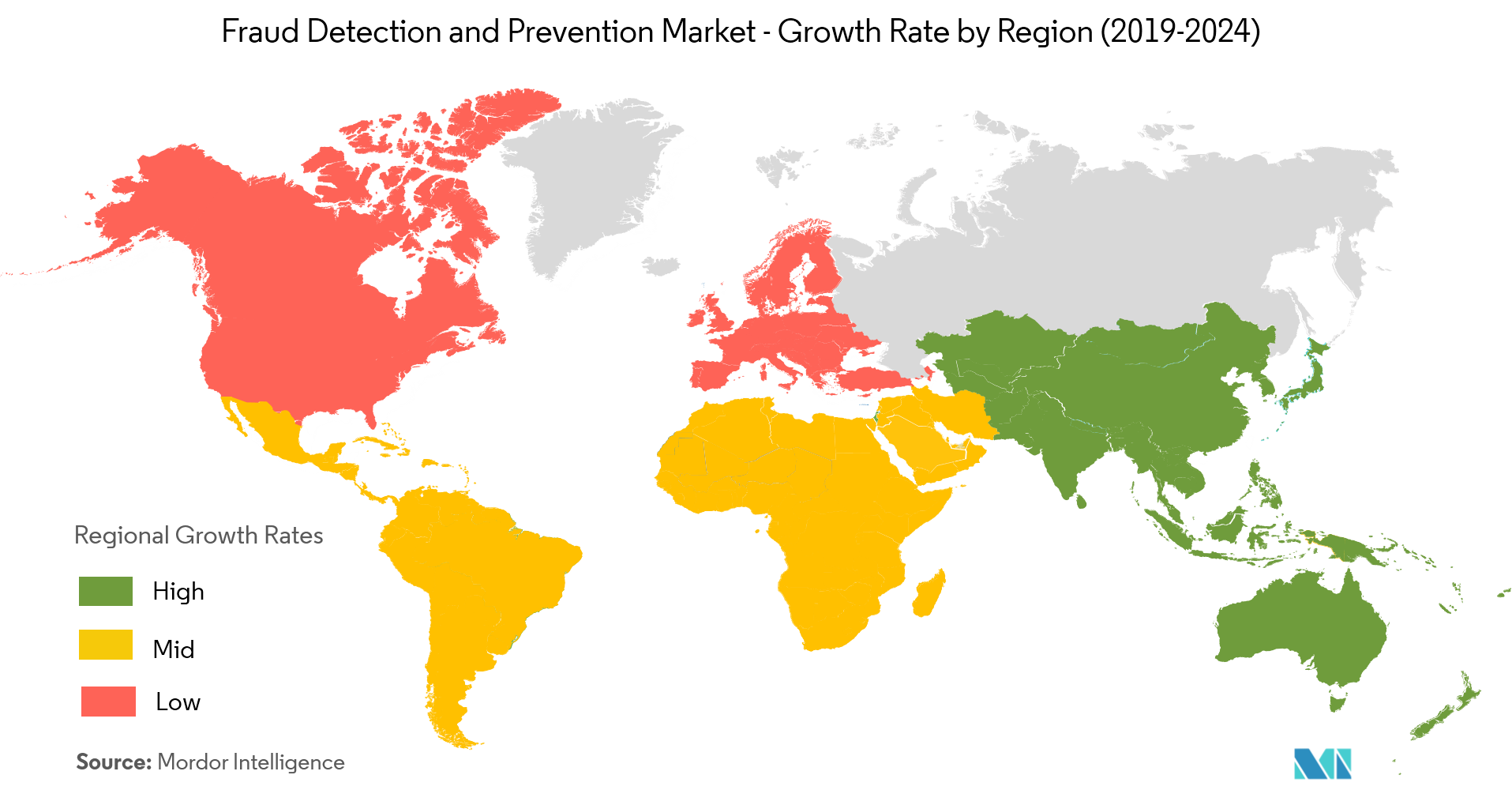 - Regionally, North America retained 27.5% share of the 2024 fraud detection and prevention market size, while Asia-Pacific is the quickest-growing region at 20.1% CAGR through 2030.