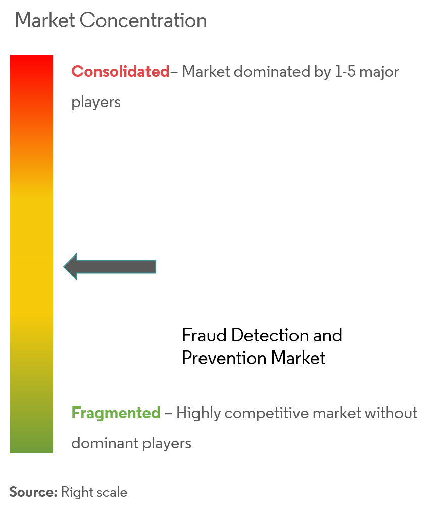 The vendor matrix remains moderately fragmented, with top providers jointly controlling under half of global revenue. Technology differentiation pivots on model explainability, consortium data breadth, and deployment agility rather than features parity. IBM, Oracle, and Microsoft embed fraud micro-services inside broader cloud stacks, leveraging cross-product synergies to lock in enterprise accounts. Specialist players—FICO, Feedzai, and Sift—push detection accuracy by pairing graph analytics with network-wide behavioral signatures.