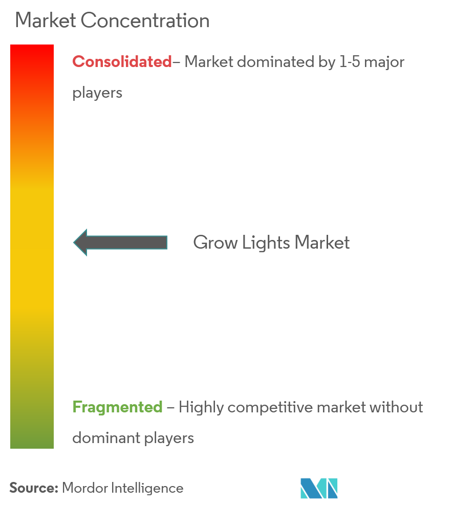 The grow lights market is moderately concentrated, featuring conglomerates such as Signify, ams OSRAM, and Acuity Brands alongside specialists like Heliospectra and P.L. Light Systems. Consolidation gathered pace when Acuity Brands bought the Arize horticulture line in 2023, signalling mainstream lighting vendors’ commitment to horticulture. Players now differentiate through integrated packages that blend high-PPE hardware, granular spectrum control, and cloud analytics.