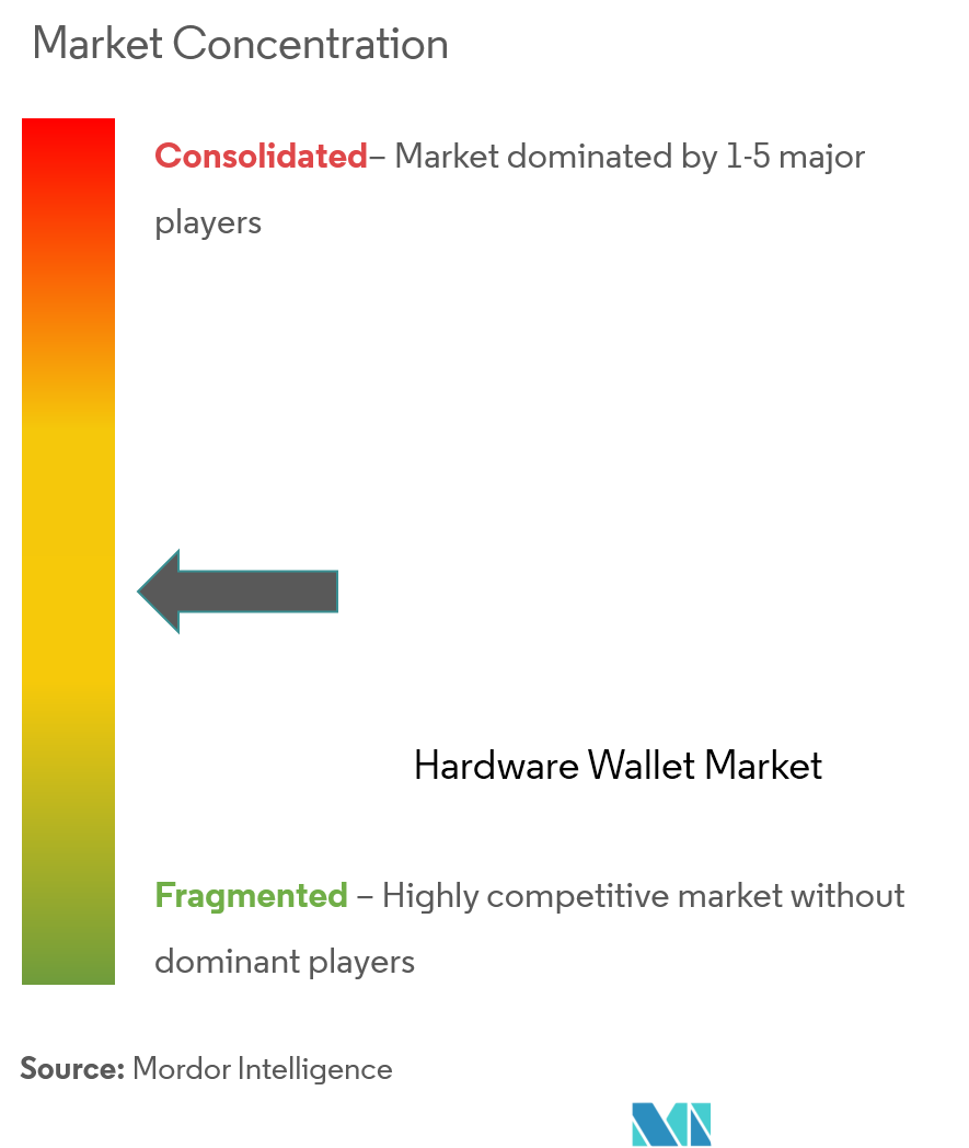 The field remains moderately concentrated. Ledger and Trezor still dominate brand recall, but venture-backed challengers funded through 2024–2025 inject experimental SKUs like smart rings, biometric smartcards, and mini HSMs. Ledger alone has attracted USD 575 million across multiple rounds to scale enterprise offerings. New entrants typically differentiate with open-source firmware or aggressive EAL6+ certification, but they must still secure semiconductors amid allocation crunches, a barrier incumbents mitigate through multi-year wafer agreements.