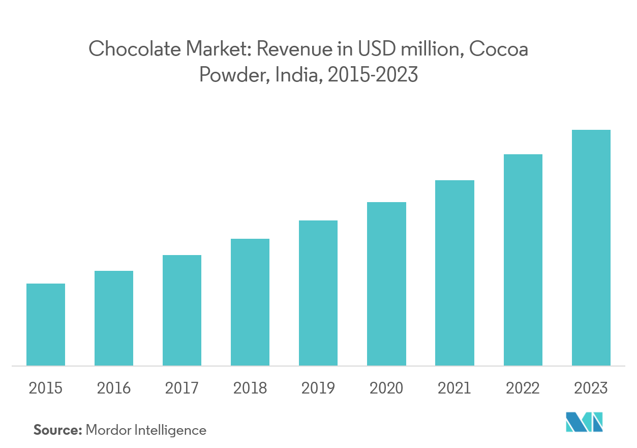 - The increasing awareness of consumer health has resulted in an increase in the demand for chocolate products with enhanced health benefits. As of 2022, a majority of Indians (44%) were willing to invest in higher-quality chocolates due to their associated health benefits.