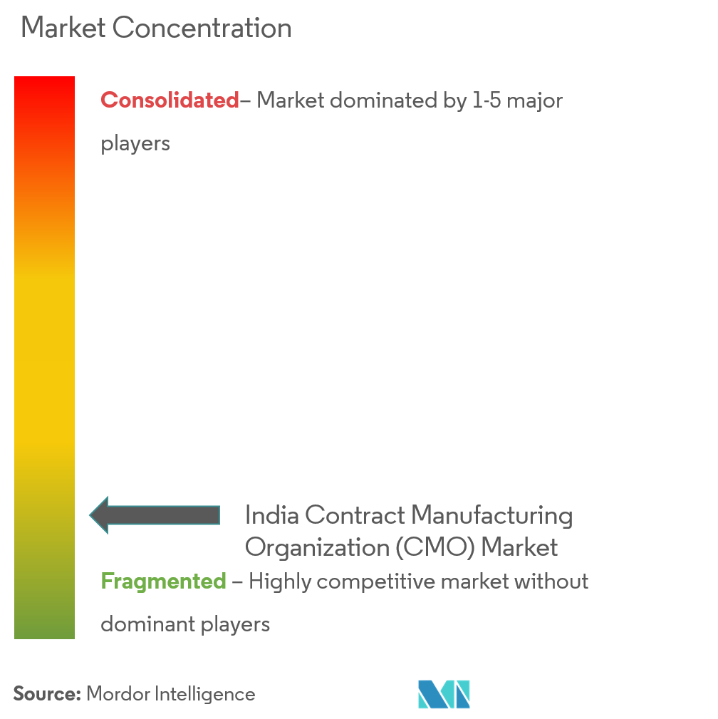 The India contract manufacturing organization market exhibits moderate concentration, with scale-intensive incumbents sharing space with nimble specialists. Divi’s Laboratories, Dr. Reddy’s, and Sun Pharma command sizeable revenue bases built on vertically integrated chemistry, multi-regulatory approvals, and long-tenure client rosters. Their operational breadth spans APIs to finished dosage, allowing one-stop engagements that attract big-pharma volumes. These leaders are sinking capital into biologics modules, advanced aseptic lines, and digital quality systems to defend margins against emerging rivals.