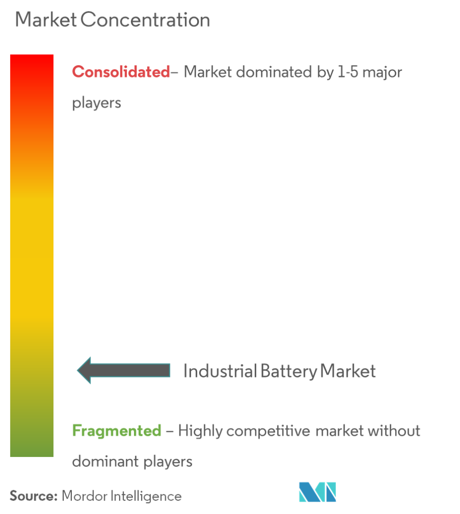 The industrial battery market features moderate fragmentation, with the top five suppliers accounting major share of 2024 revenues. CATL, BYD, LG Energy Solution, Samsung SDI, and Panasonic dominate lithium-ion volumes through enormous scale and broad chemistry portfolios. EnerSys and East Penn defend lead-acid incumbency by modernizing plants, adding partial lithium-ion lines, and securing recycling loops. Consolidation accelerates as players lock in raw material offtake, absorb integrators, and pursue direct-to-end-user channels. LG Energy Solution’s USD 1.4 billion US stationary storage plant exemplifies vertical integration: cathode to cell to rack.